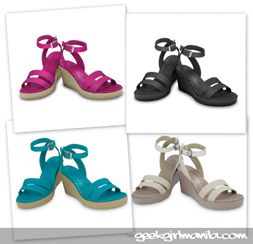 Crocs Leigh Wedge, P3,200. I can’t decide whether to get the pink one, or the white one. The aqua is actually kind of cute, too.