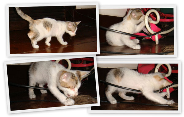 So when I heard meowing, I readied myself for my daily dose of patintero with the neighborhood cats.