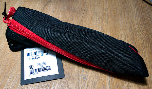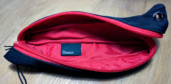 It does look like a Carrot, doesn’t it? The Carrot is a VERY durable pencil case. It has brass-reinforced eyelets that lets you attach the Carrot to a key ring or an accessory loop on another Crumpler.