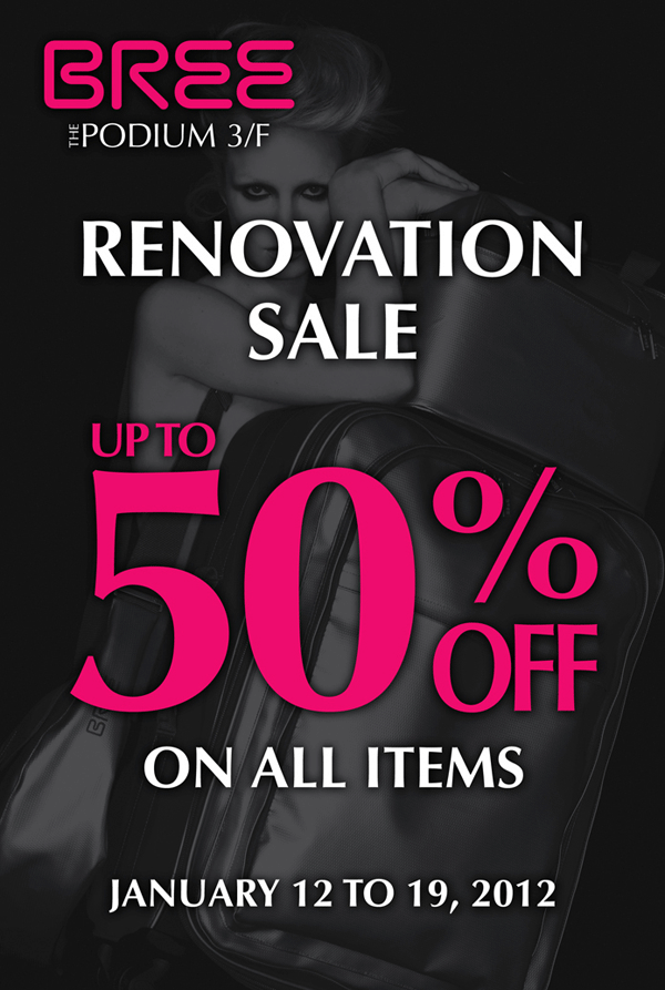 Bree is having a Renovation Sale this coming January 12 – 19 in Podium, and all items are at 50% off! (Just when you think you can start saving…)