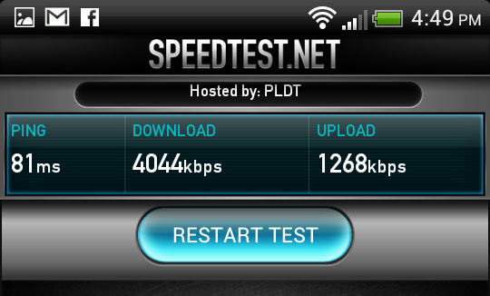 Speedtest result on the hubby’s HTC Sensation, Katipunan Area. That’s 4MB/s