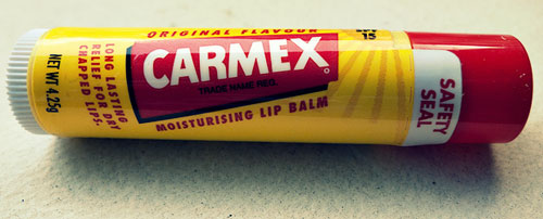 S-e-r-i-o-u-s-l-y, this stuff is GREAT. If you have dry, chapped, cracking lips and you want to REALLY moisturize your puckers, I really recommend the brand Carmex.