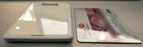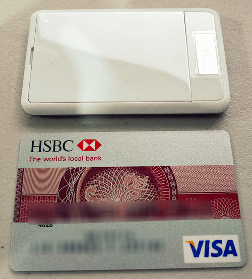 Thickness comparison with a credit card.