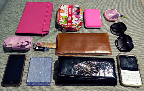 So what’s inside? My Kindle, my makeup pouch, my credit card holder, rosary from my mother-in-law, eco-bag, a USB flash drive, my Fino checkbook, shades, my iPod Touch, a compact mirror, my wallet and ofcourse, my HTC Chacha 🙂