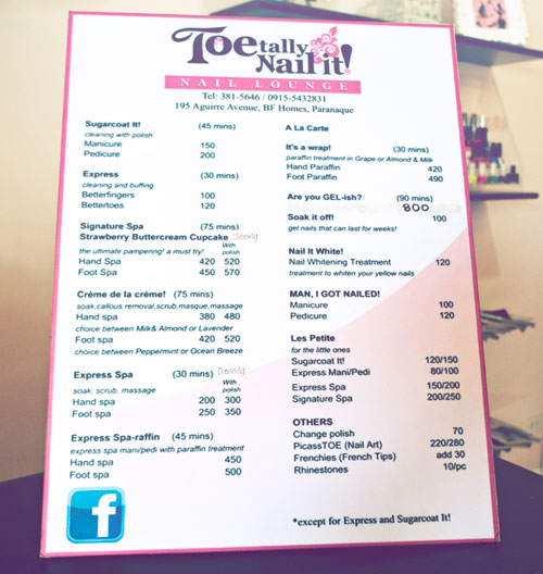 If you’re looking for a place to get your nails done in BF Homes, Paranaque, drop by Toetally Nail It. Their services are very affordable and they are very accomodating, too!