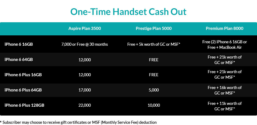 For Infinity subscribers, you can get TWO (2!! yeah, you heard that right) iPhone 6 16GB for FREE at Plan 8000.