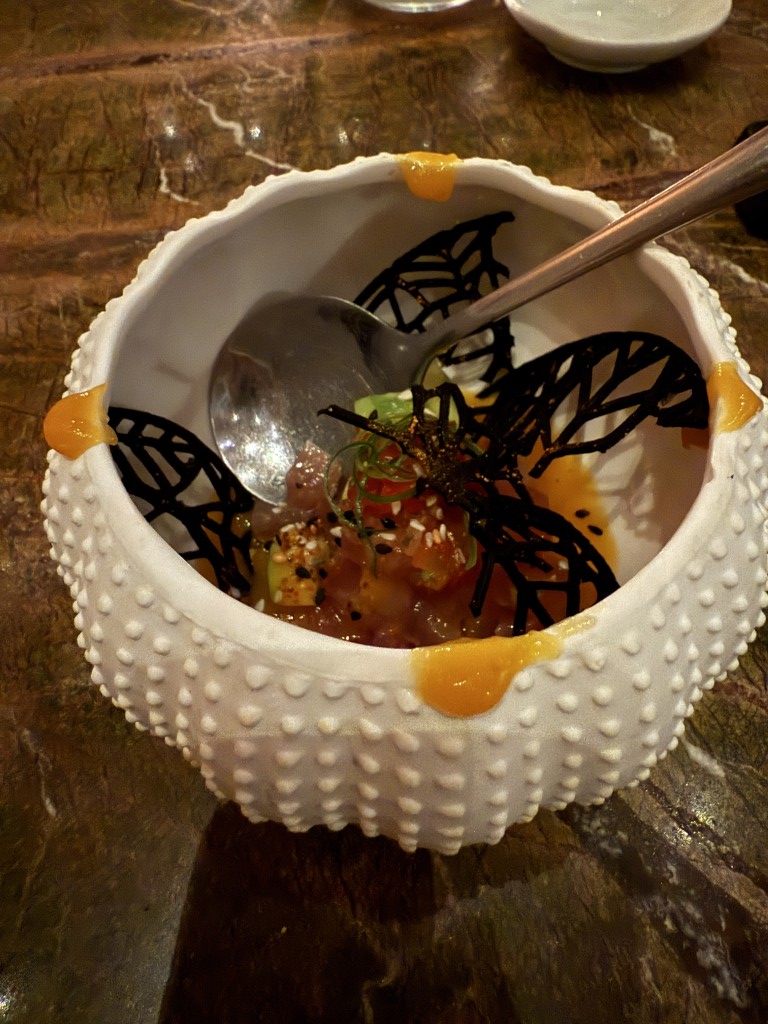 The Chef’s Menu is an eight-course tasting experience where the kitchen sends out a curated selection of their best dishes so you just sit back, enjoy, and let the flavors roll in.